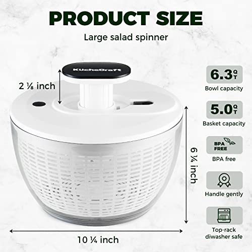 KucheCraft Salad Spinner Large 6.3 Qt, Manual Lettuce Spinner for Vegetable Prepping, One-Handed Pump Fruit Spinner Dryer with Bowl and Colander, Dishwasher Safe Veggie Fruit Washer Spinner-Black